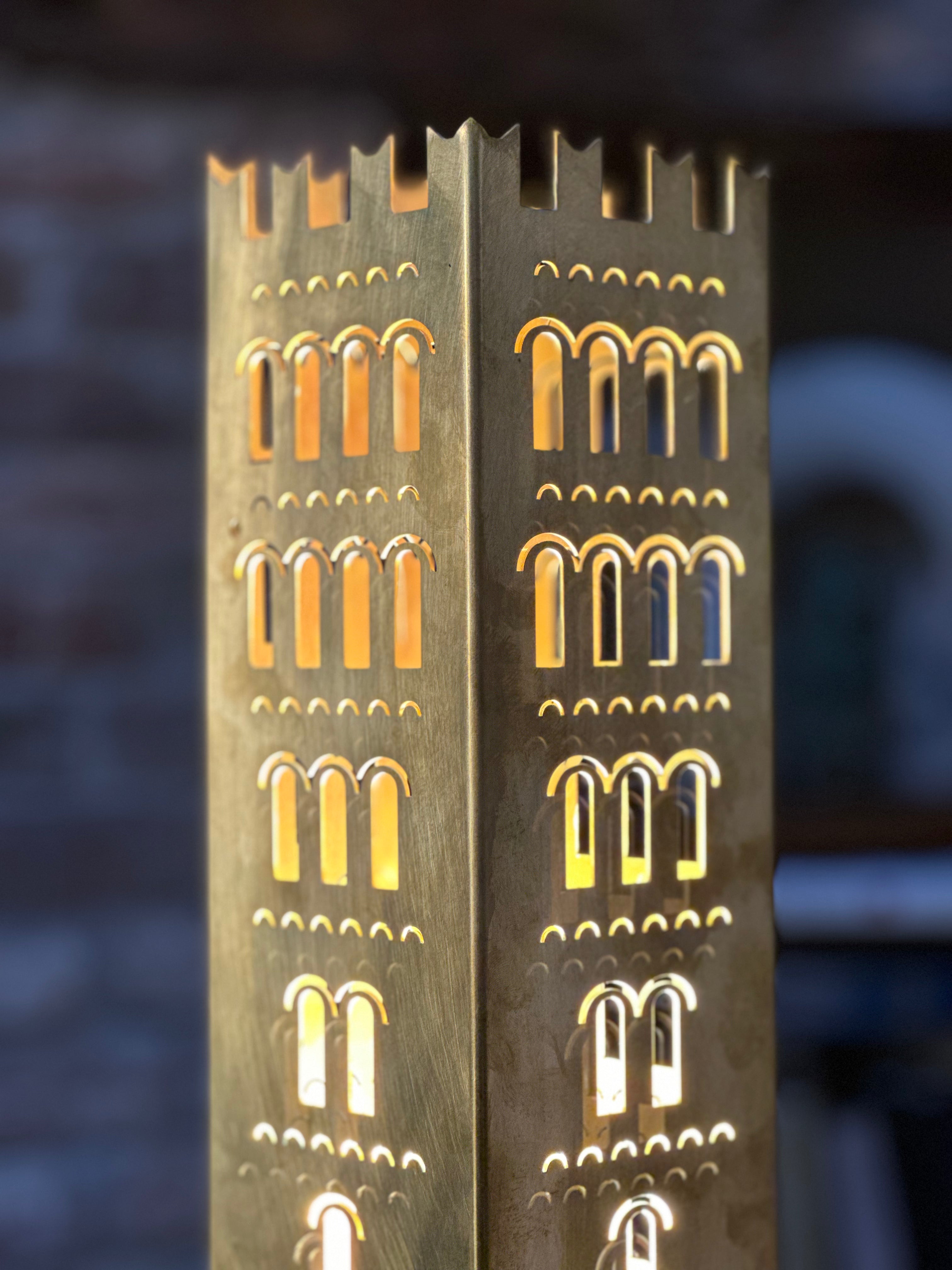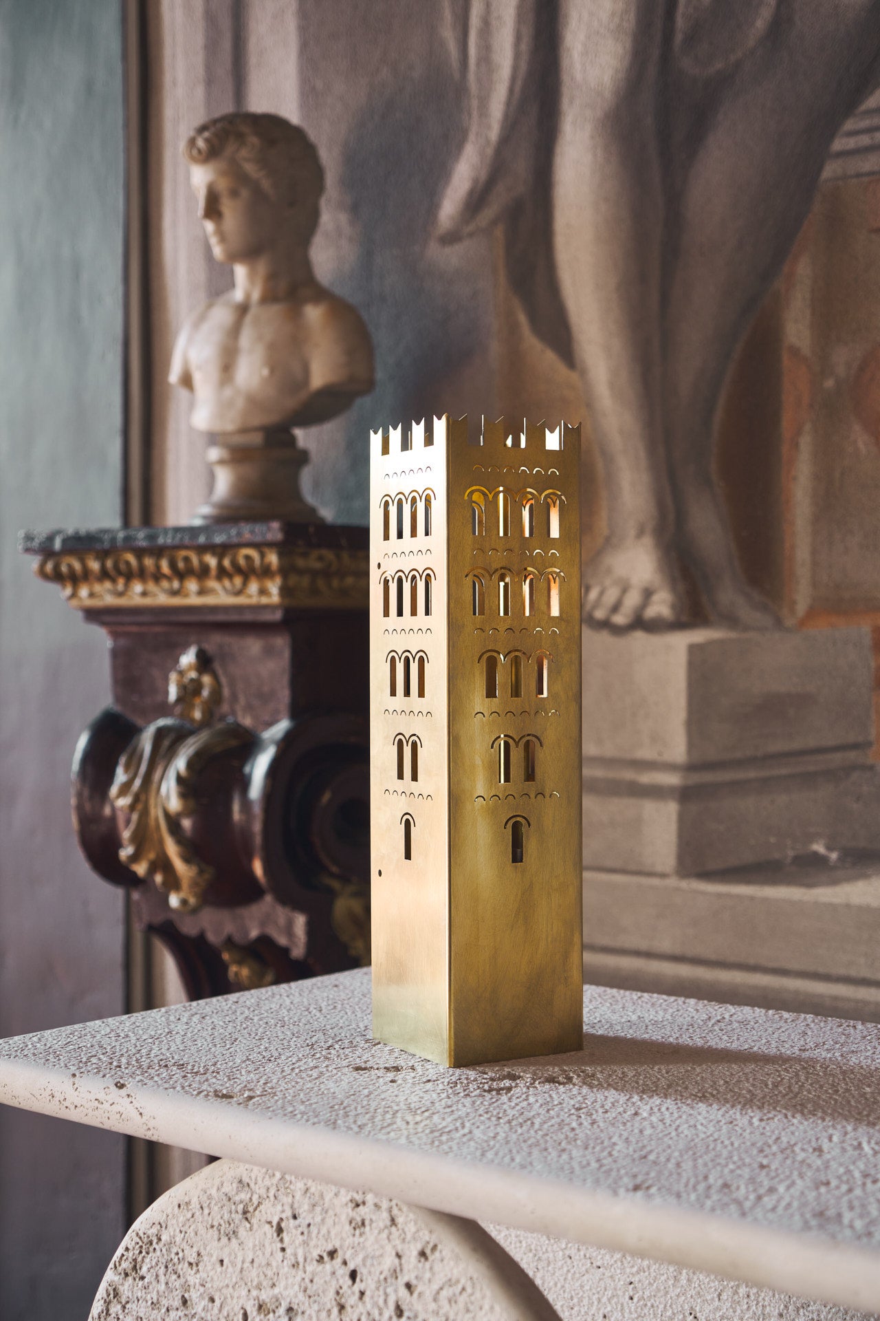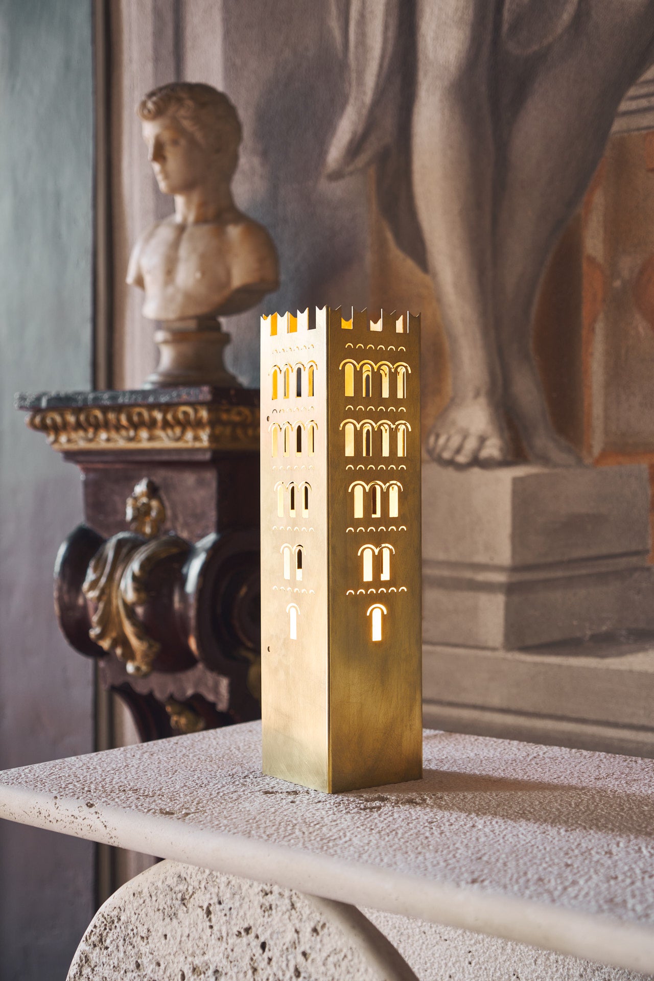 Questa lampada di design trae ispirazione dall'architettura medievale toscana, creando un perfetto equilibrio tra design contemporaneo, storia e tradizione.